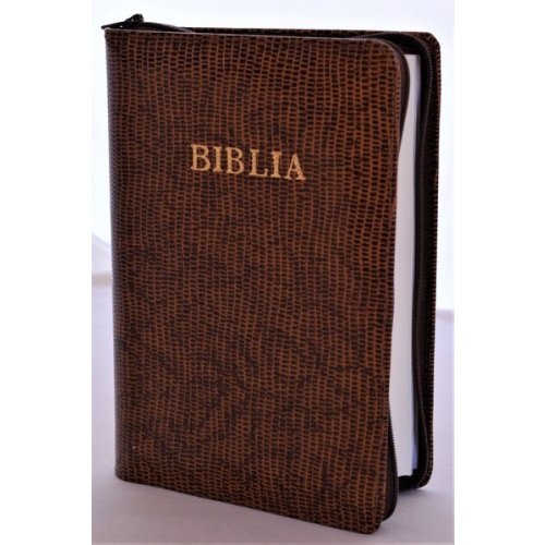 Biblia din piele, marime medie, maro texturat, fermoar, cuv. lui Isus cu rosu [053]