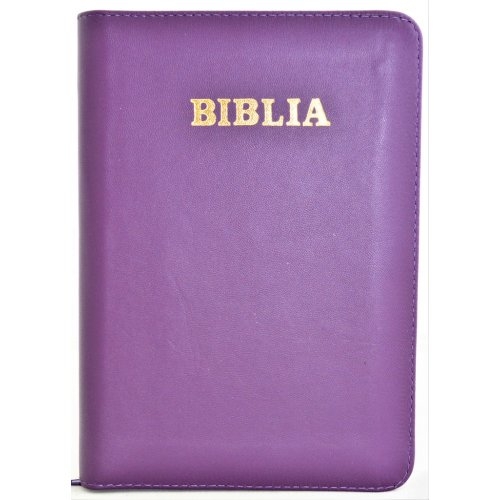 Biblia din piele, marime medie, mov, fermoar, cuv. lui Isus cu rosu [053]