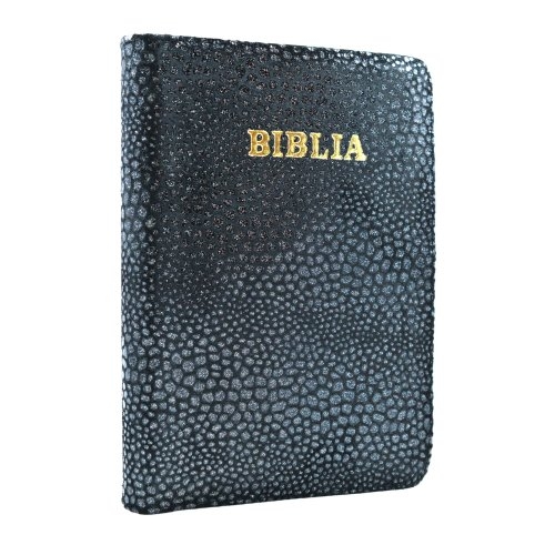 Biblia din piele, marime medie, neagra cu pete argintii, fermoar, cuv. lui Isus cu rosu [053]