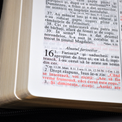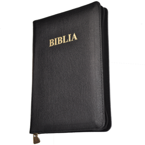 Biblia din piele, marime medie, neagra, fermoar, fara index, margini aurii, cuv. lui Isus in rosu [052 PF]