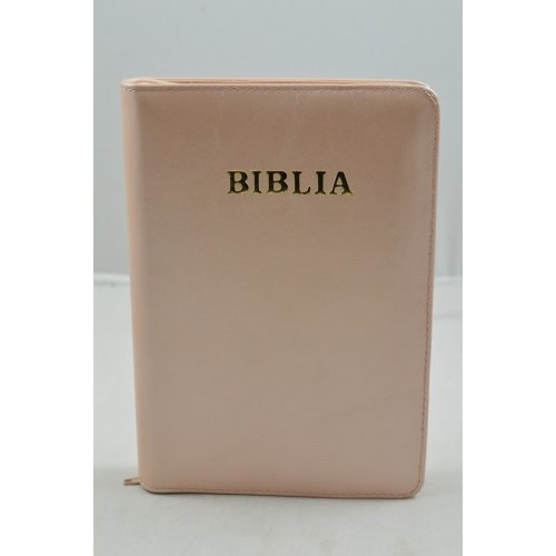 Biblia din piele, marime medie, nuanta roz sidefat, fermoar, cuv. lui Isus cu rosu [053]