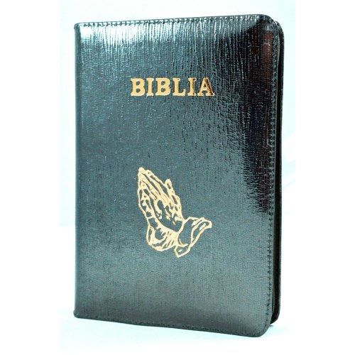 Biblia din piele, marime medie, oliv stralucitor, fermoar, simbol maini, cuv. lui Isus cu rosu [053]