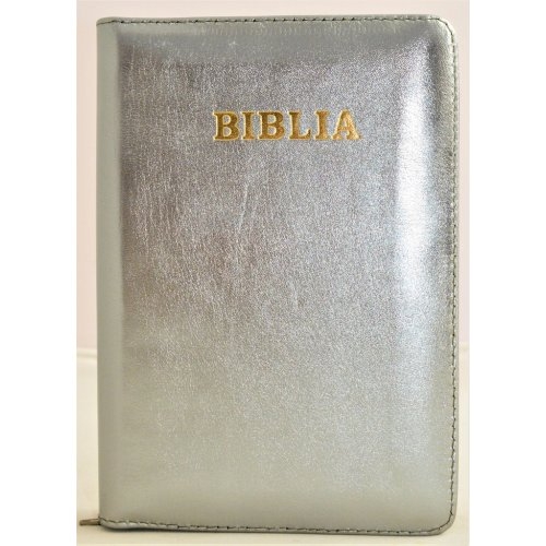 Biblia din piele, marime medie, olive sidefat, fermoar, cuv. lui Isus cu rosu [053]