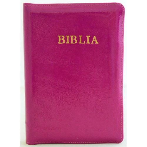 Biblia din piele, marime medie, culoare magenta, fermoar, cuv. lui Isus cu rosu [053]