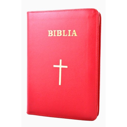 Biblia din piele, marime medie, rosie, fermoar, simbol cruce, cuv. lui Isus cu rosu [053]