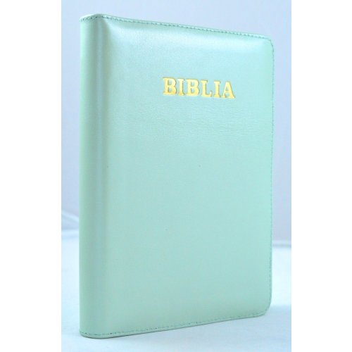 Biblia din piele, marime medie, verde turcoaz, fermoar, aurita, cuv. lui Isus cu rosu [052]