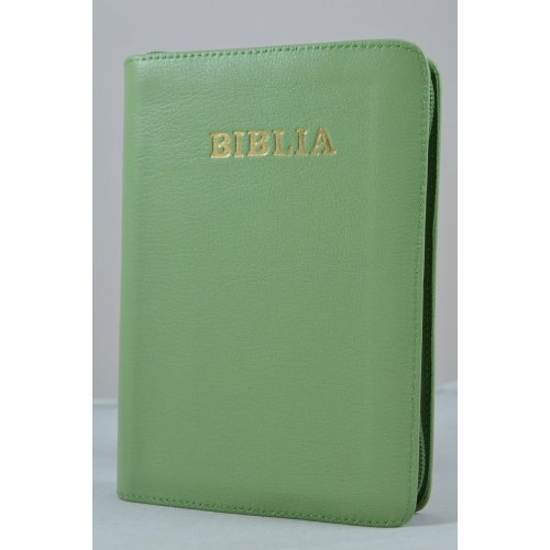 Biblia din piele, marime medie, verde vernil, fermoar, margini albe, cuv. lui Isus cu rosu [053]