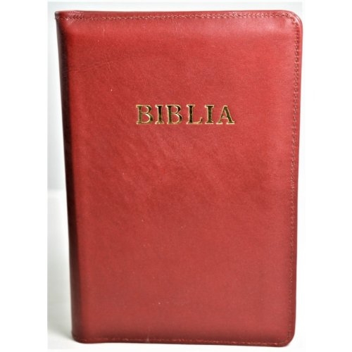 Biblia din piele, marime medie, visiniu, fermoar, cuv. lui Isus cu rosu [053]