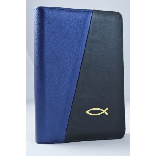 Biblia din piele, medie, albastru indigo / negru, fermoar, aurita, cu peste, cuv. lui Isus cu rosu [052]