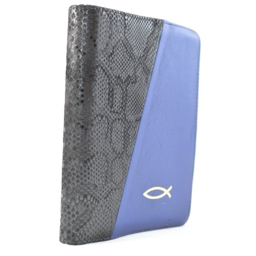 Biblia din piele, medie, negru / albastru indigo, fermoar, aurita, cu peste, cuv. lui Isus cu rosu [052]
