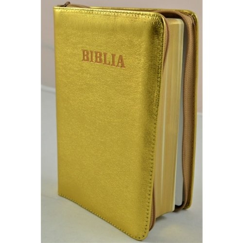 Biblia din piele, medie, auriu sidefat, fermoar, aurita, cuv. lui Isus cu rosu [052]