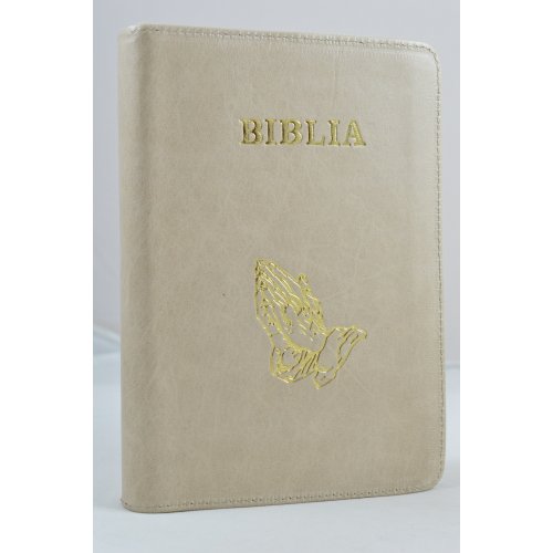 Biblia din piele, medie,cafeniu deschis cu maini, fermoar, aurita, cuv. lui Isus cu rosu [052]
