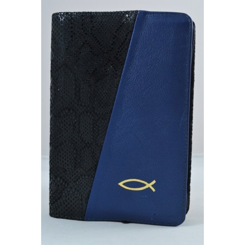 Biblia din piele, medie,culoare negru texturat-albastru inchis , fermoar, aurita,model peste, cuv. lui Isus cu rosu [052]