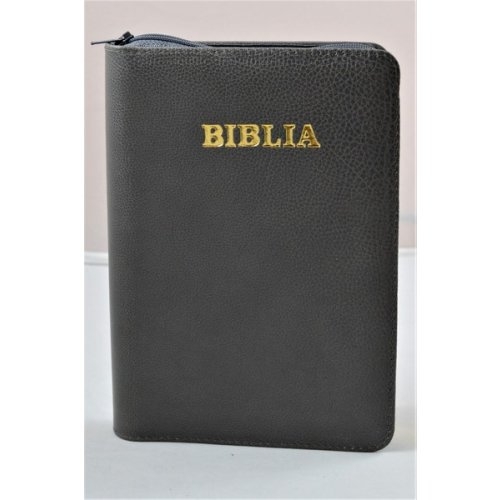 Biblia din piele, medie, gri, fermoar, aurita, cuv. lui Isus cu rosu [052]