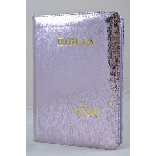 Biblia din piele, medie, mov sidefat, fermoar, simbol peste, cuv. lui Isus cu rosu [052]