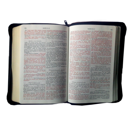 Biblia din piele, medie, neagra, fermoar, aurita,cu maini in ruga, cuv. lui Isus cu rosu [052]