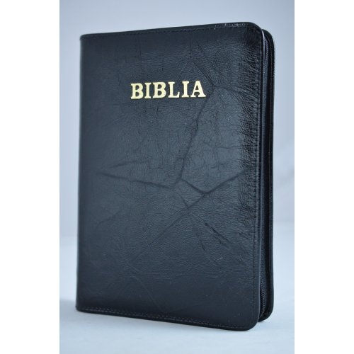 Biblia din piele, medie, negru, fermoar, aurita, cuv. lui Isus cu rosu [052]