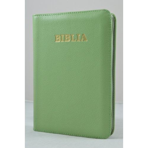 Biblia din piele, medie, verde vernil, fermoar, aurita, cuv. lui Isus cu rosu [052]