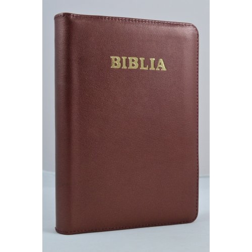 Biblia din piele, medie,visiniu , fermoar, aurita, cuv. lui Isus cu rosu [052]