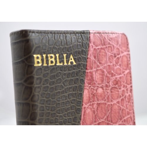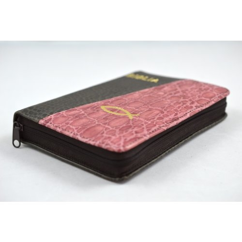 Biblia din piele, negru / stacojiu, dimensiune mica, fermoar, cu peste, cuv. lui Isus cu rosu [043]