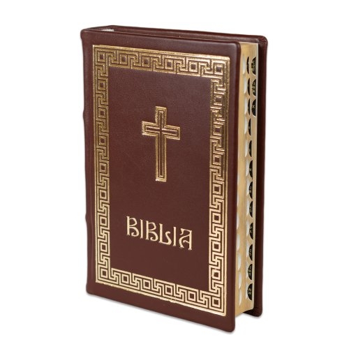 Biblia editie limitata, prelucrata manual, marime medie, maro inchis , margini aurii, index, simbol cruce , cuv. lui Isus cu rosu [057 HMI]