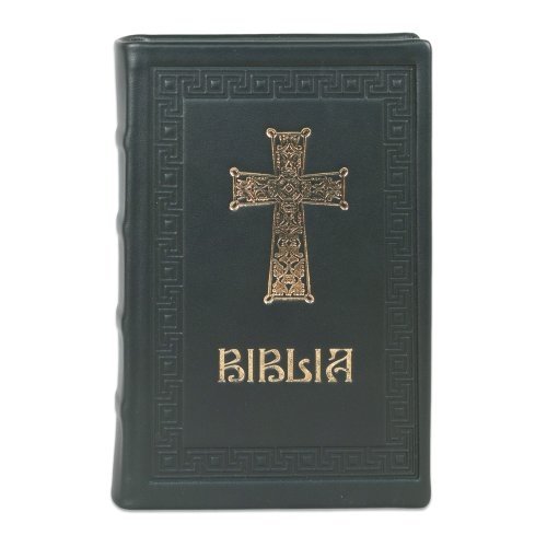 Biblia editie limitata, prelucrata manual, marime medie, gri-verzui inchis , margini aurii, index, simbol cruce , cuv. lui Isus cu rosu [057 HMI]