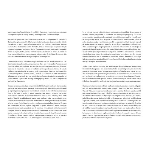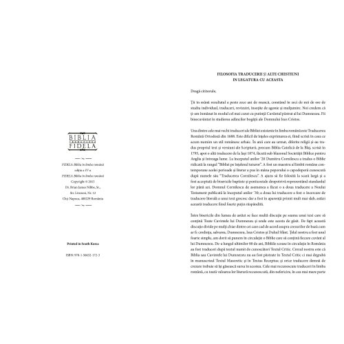 Aceasta biblie este rezultatul a peste zece ani de muncă, constând în zeci de mii de ore de studiu individual, traduceri, revizuiri, însoţite de agonie şi mulţumire. Noi credem că ţi-am înmânat în modul cel mai curat cu putinţă Cuvântul păstrat al lui Dumnezeu.