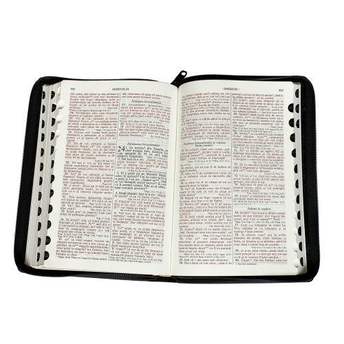 Biblia foarte mare, coperta piele, scris foarte mare, neagra, margini aurii, fermoar, index, trad. Cornilescu, cuvintele lui Isus cu rosu [ 088 ZTI]