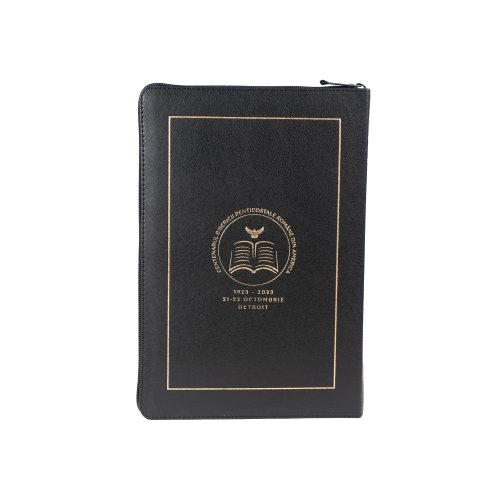 Biblia foarte mare, piele, scris foarte mare, neagra, aurita, fermoar, index, cuvintele lui Isus, trad. Cornilescu, ediție specială Centenar Bis. Penticostală SUA [ 087 ZTI]
