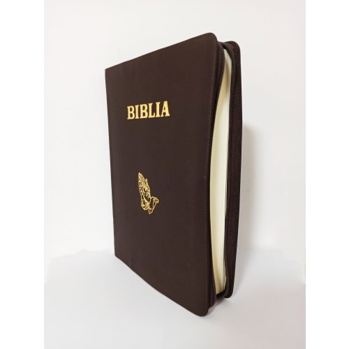 Biblia foarte mare, scris foarte mare, piele, fermoar, culoare maro brun, simbol maini [093 PF]
