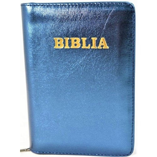 Biblia format mic, din piele, culoare bleumarin sidefat, index, fermoar, margini argintii, cuv. lui Isus in rosu [047 PFI]