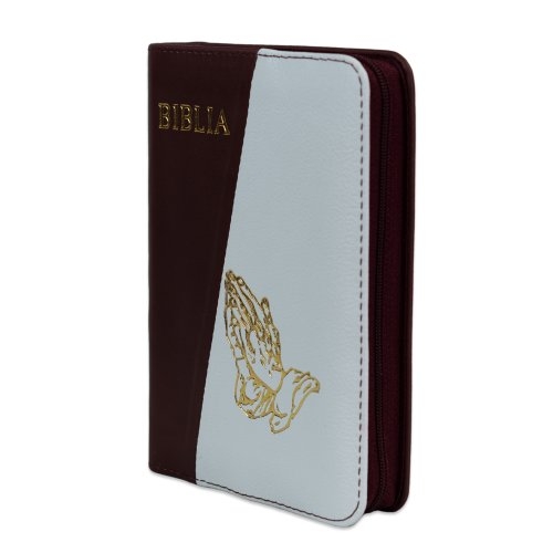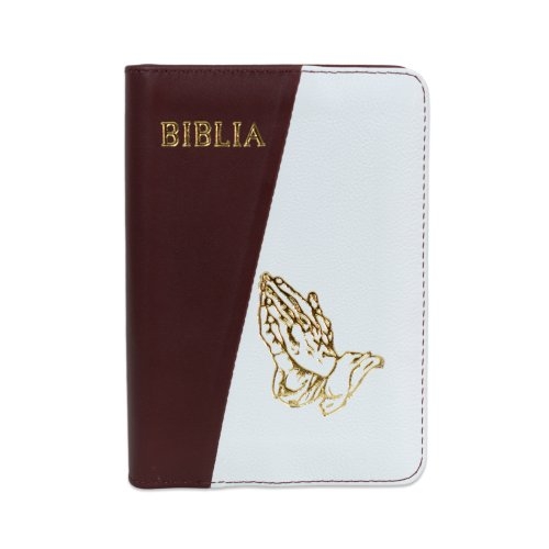Biblia format mic, din piele, culoare, bordo cu alb, index, simbol maini, fermoar, margini argintii, cuv. lui Isus in rosu [047 PFI]