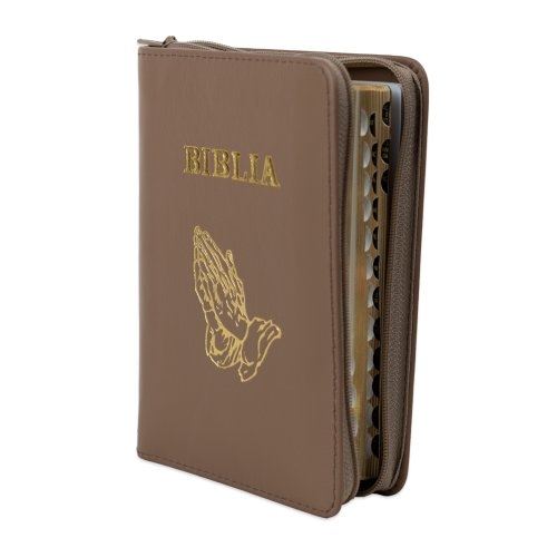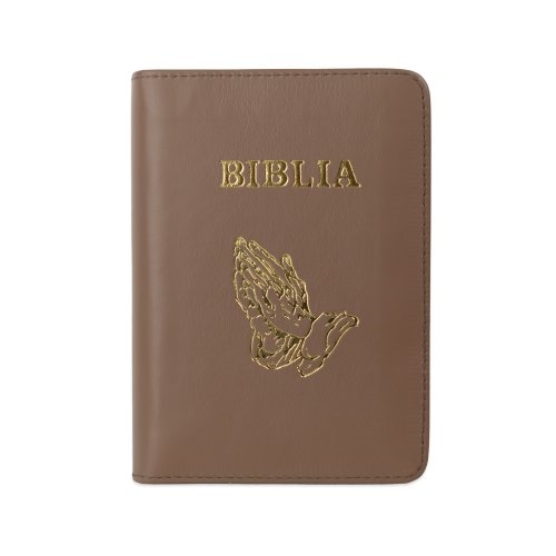 Biblia format mic, din piele, culoare, maro, index, simbol maini, fermoar, margini argintii, cuv. lui Isus in rosu [047 PFI]