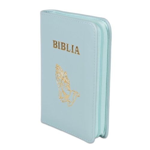 Biblia format mic, din piele, culoare menta deschis, dex, fermoar, margini argintii, simbolul maini in ruga, cuv. lui Isus in rosu [047 PFI]