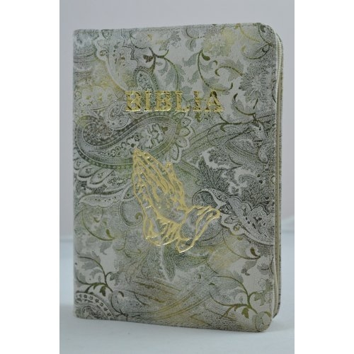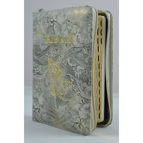 Biblia format mic, din piele, culoare motiv floral, index, fermoar, margini aurii, simbol - maini, cuv. lui Isus in rosu [047 PFI]