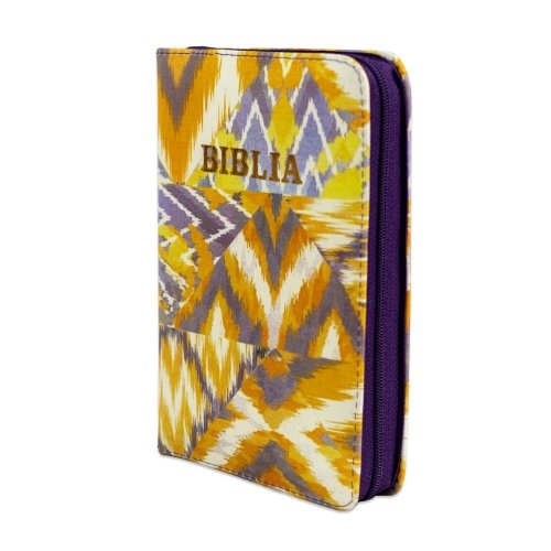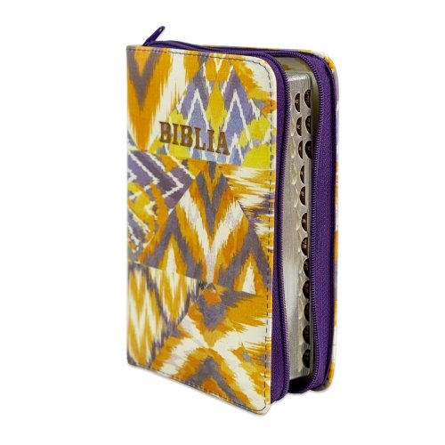 Biblia format mic, din piele, culoare multicolor, index, fermoar, margini argintii, cuv. lui Isus in rosu [047 PFI]