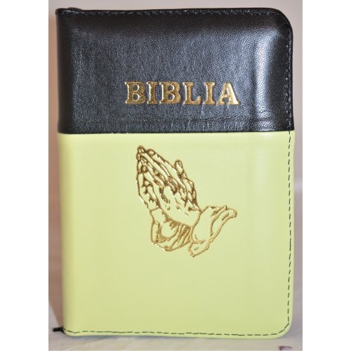 Biblia format mic, din piele, culoare negru cu verde deschis, index, fermoar, margini argintii, simbolul maini, cuv. lui Isus in rosu [047 PFI]