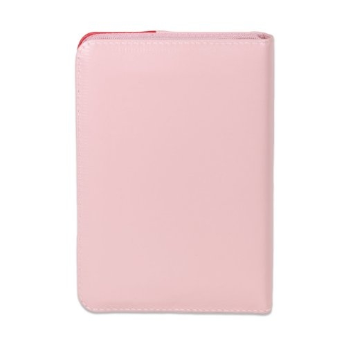 Biblia format mic, din piele, culoare roz pal cu roz bombon, index, fermoar, margini argintii, simbolul maini in ruga, cuv. lui Isus in rosu [047 PFI]