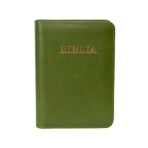Biblia format mic, din piele, culoare, verde, index, fermoar, margini argintii, cuv. lui Isus in rosu [047 PFI]