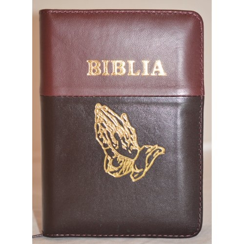 Biblia format mic, din piele, culoare visiniu cu maro, index, fermoar, margini argintii, simbolul maini, cuv. lui Isus in rosu [047 PFI]