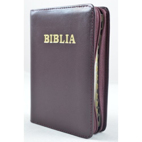 Biblia format mic, din piele, culoare visiniu, index, fermoar, margini argintii, cuv. lui Isus in rosu [047 PFI]