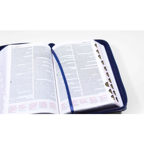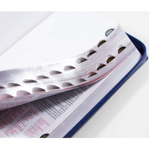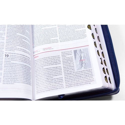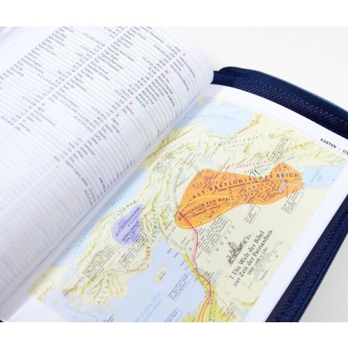 Biblia germana - Luther21 - F.C. Thompson Studienausgabe, piele ecologica, marime 12,7x19cm, culoare bleumaren, fermoar, index, margini argintii, cuv. lui Isus cu rosu