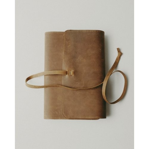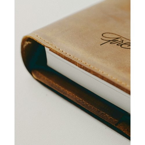 Biblia Handcraft, marime mica, coperta de piele autentica cu snur, maro, prelucrata manual