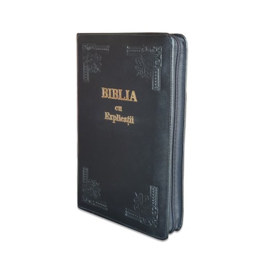 Biblia handmade, cu concordanta si explicatii, marime mare, piele, culoare neagra, fermoar, index, margini aurii, cuv. lui Isus cu rosu [CO 77 HMI]