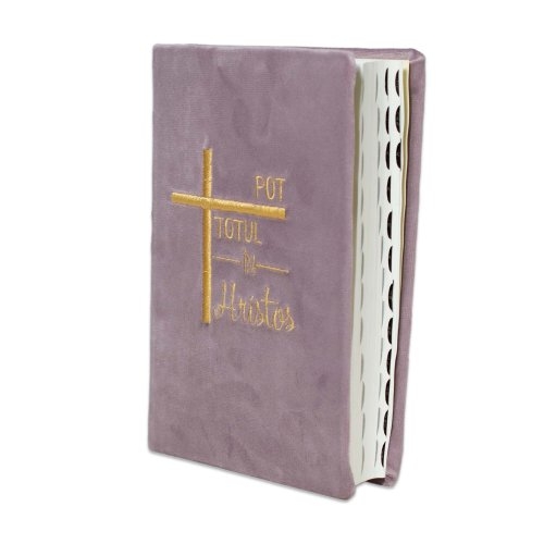 Biblia handmade, culoare mov deschis , marime medie, coperta flexibila textila, margini albe, index, harti biblice [057 HM]