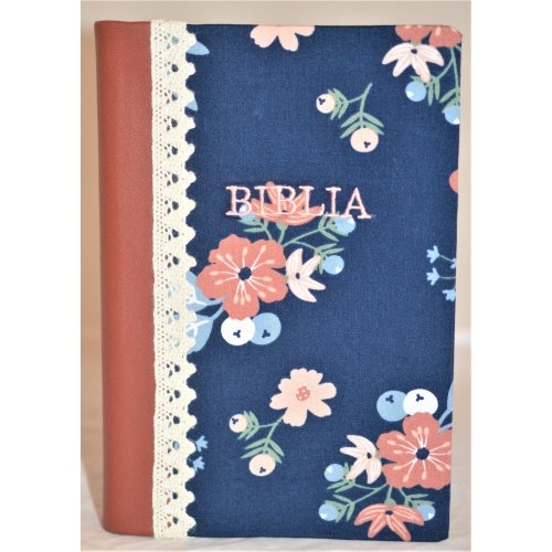 Biblia handmade, marime medie, coperta flexibila textila, Model 21, margini aurii, cuv. lui Isus cu rosu [SB 052 HM]