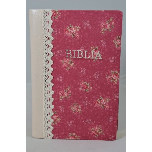Biblia handmade, marime medie, coperta flexibila textila, Model 3, margini aurii, cuv. lui Isus cu rosu [SB 052 HM]