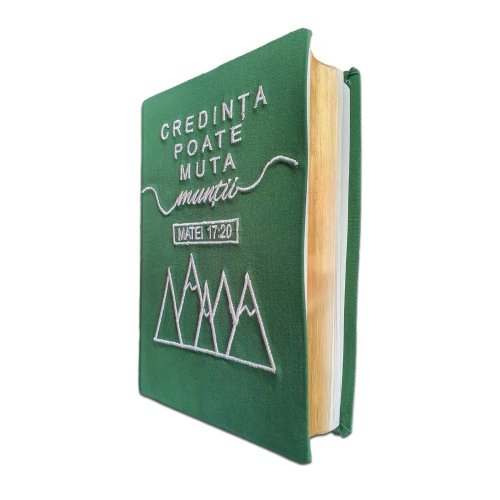 Biblia handmade, marime medie, coperta flexibila textila, Model 37, Credinta poate muta muntii, margini aurii, cuv. lui Isus cu rosu [SB 052 HM]