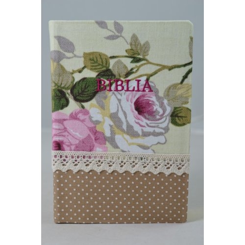 Biblia handmade, marime medie, coperta flexibila textila, Model 4, margini aurii, cuv. lui Isus cu rosu [SB 052 HM]