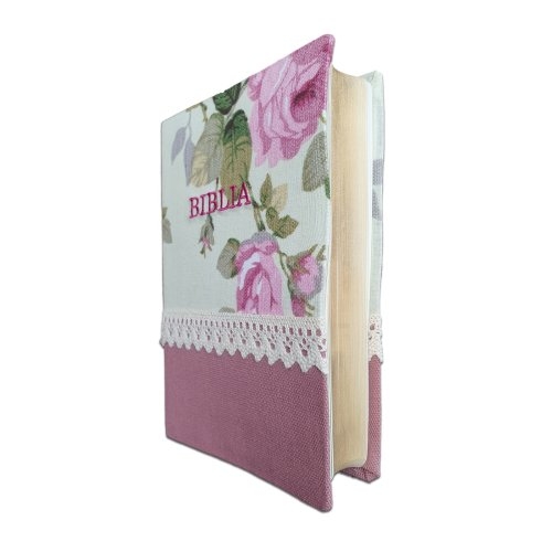 Biblia handmade, marime medie, coperta flexibila textila, Model 41, margini aurii, cuv. lui Isus cu rosu [SB 052 HM]